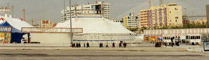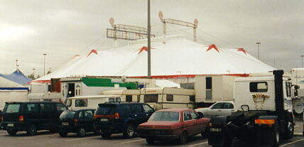Viktor Hugo Cardenali - der Supercirco auf dem Expo-Gelände in Lissabon mit Achtmastenzelt mit Programm in drei Manegen und davor das Sommerreisezelt, indem nun ein Jahrmarkt aufgebaut war.