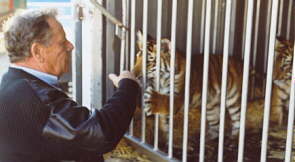 Manege von Franz Burkhart vorgeführt werden. Er will seine Nummer aber wieder auf 16 Tiger ausweiten. Im Programm auch eine Boxerhundemeute als Fußballmatch und eine Vorführung von in Kostümen eingezwängten Hunden. Freddy Burkhart zeigt einen Fünferzug Freiheitspferde und derzeit zwei Dromedare. Als nächstes werden sieben Ponys dressiert. Dazu noch ein Strauß, 1 Kamel, fünf weitere Dromedare, 1 Watussirind, 1 Guanako. Zwei weitere Pferde stehen für Tiger auf Pferd bereit, was Franz Burkhart