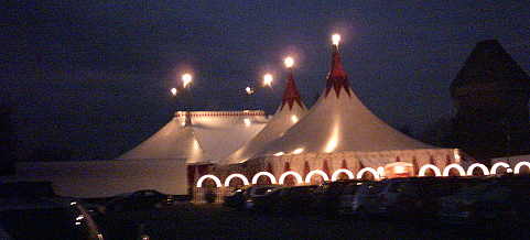 Im wunderbar dekorierten Vorzelt staut sich das Publikum am Einlass ! - Ausverkaufte Vorstellungen !