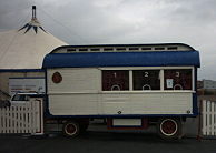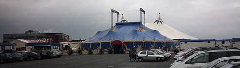 Der Landauer Weihnachtscircus wird seit mehreren Jahren produziert von Jakel Bossert. Gespielt wurde in dem weissen Zweimaster hinter dem kleineren blauen Viermaster, in dem die Restauration und ein Cafewagen untergebracht war. Leider war nur die Front beleuchtet und nicht die Zelte, so dass man nachts fast keinen Circus auf dem dunklen Messegelände sah. Die Produktion war ordentlich und besser als im Vorjahr. |